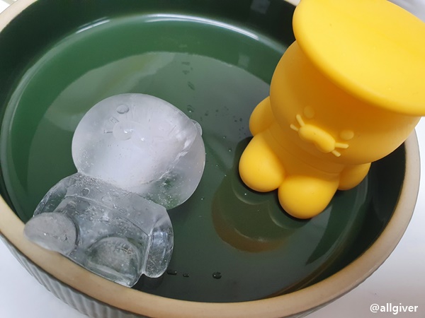 실리콘 얼음틀을 벗겨내면서 손으로 얼음을 만질 수 밖에 없었습니다^^;;